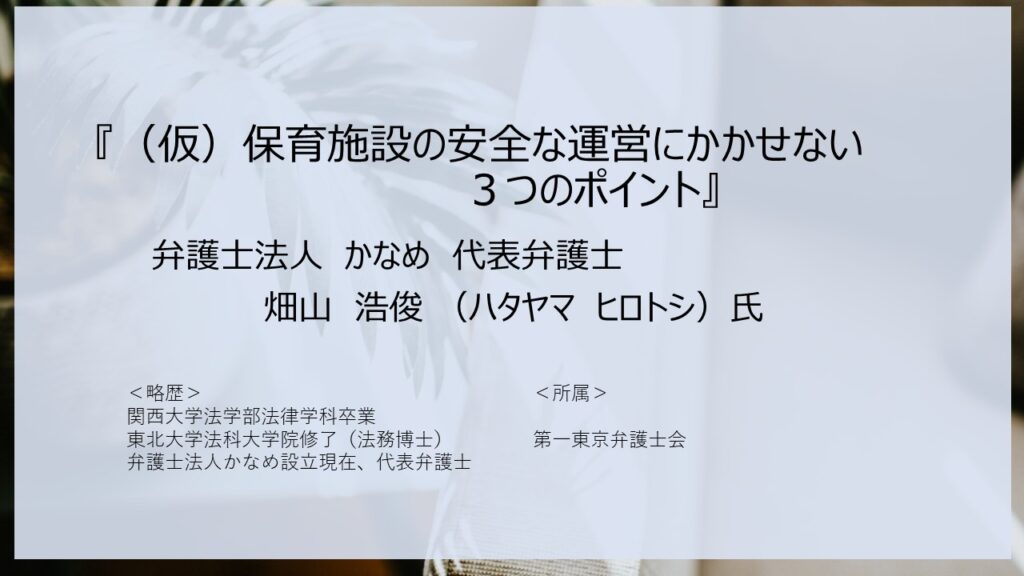 ここから先は想像を超える速さで保育園の経営状況は変わっていくので、過去の成功体験はもはや通用しなでしょう。いままでの運営を見直す力が必要であり、行き当たりばったりの経営は難しく、これからは足を止めず、進んでいかなければならないとのことでした。