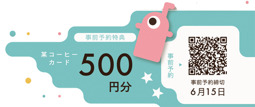 事前予約締め切りは6月27日まで。予約の方には当日に某有名コーヒーショップのカード500円相当をプレゼント!!